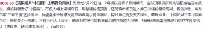 春节刚过,全球顶级投行瑞银就给中国锂行业送来了“大红包”。